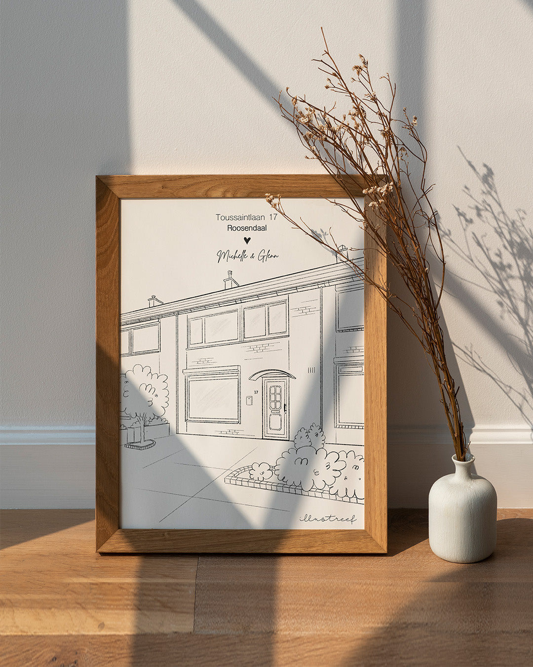 Wanneer je een tekening met omlijsting kiest wordt deze automatisch ingelijst in...